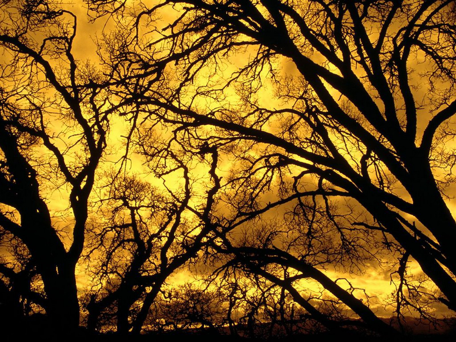 Скачать обои для рабочего стола Золотое небо над голыми деревьями и фото