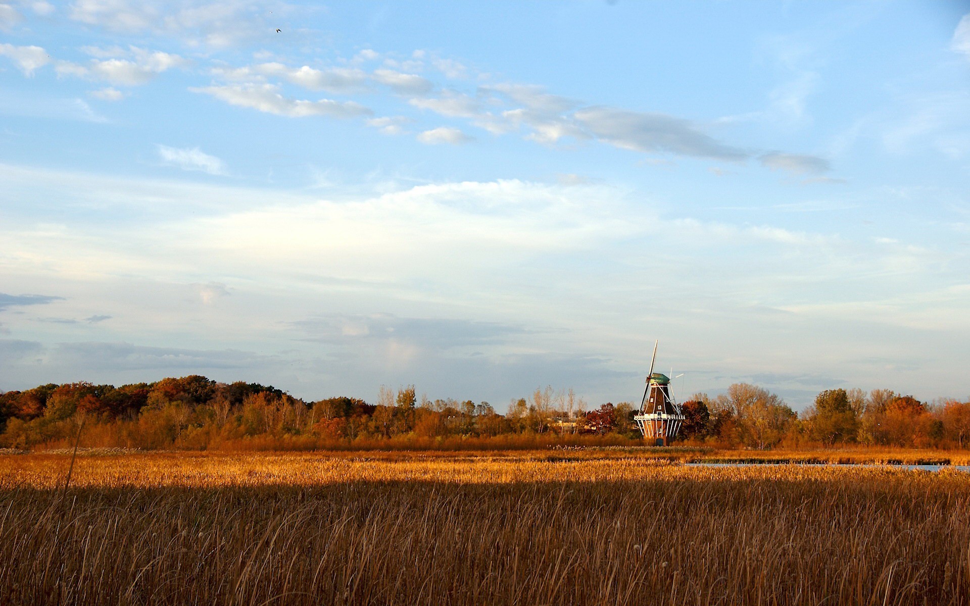 Скачать обои для рабочего стола Золотое поле у речушки и фото
