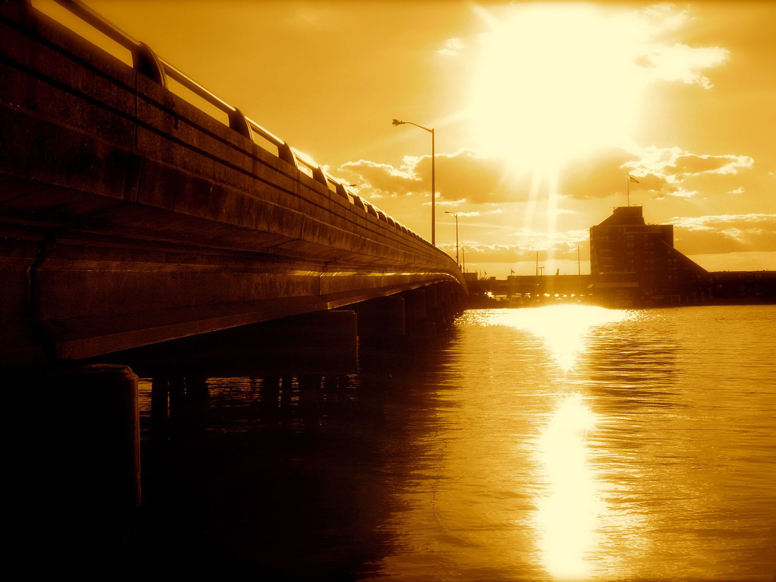 Скачать обои для рабочего стола Золотой закат на реке и фото