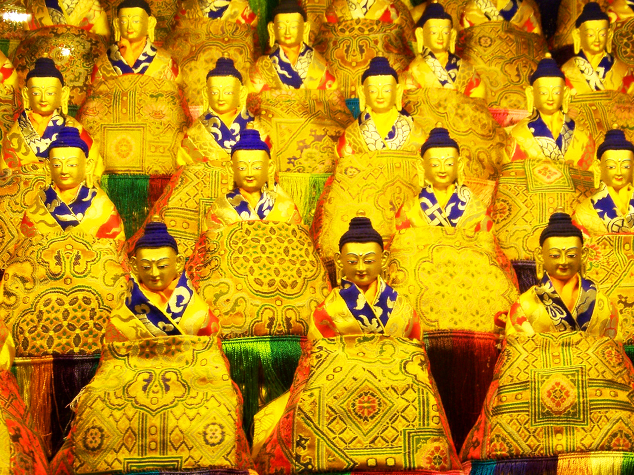 Скачать обои для рабочего стола Золотые изваяния Будд и фото