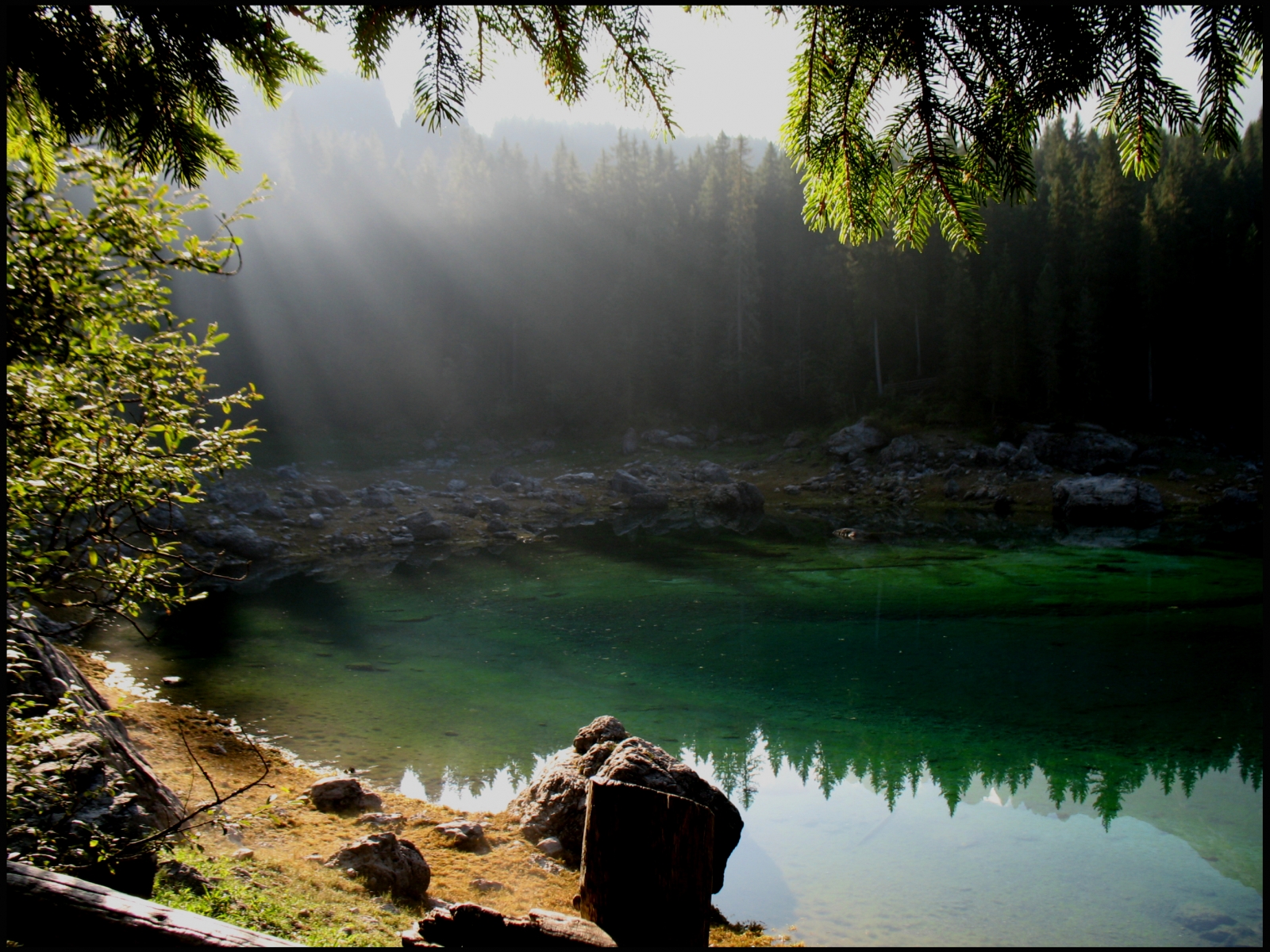 Похожие обои на Зорька над прудом, в летнем еловом лесу: