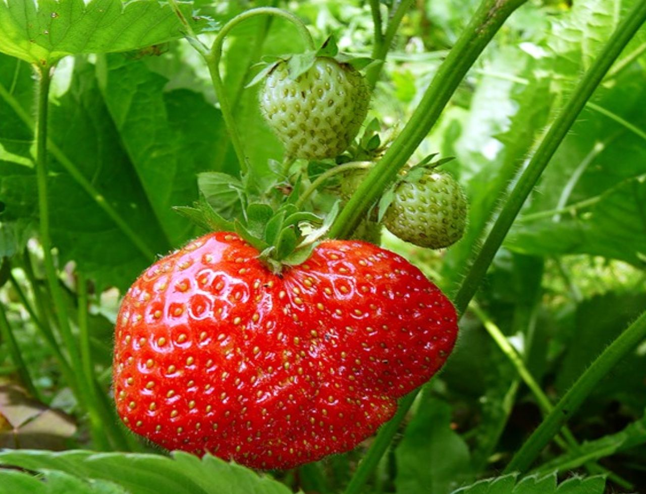 Скачать обои для рабочего стола Зреет на даче клубника и фото